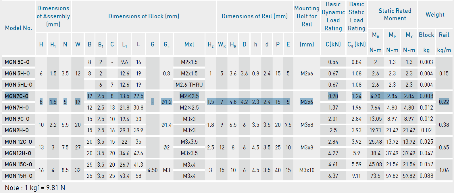 Lineární vedení HXHV řady MGN7C MG